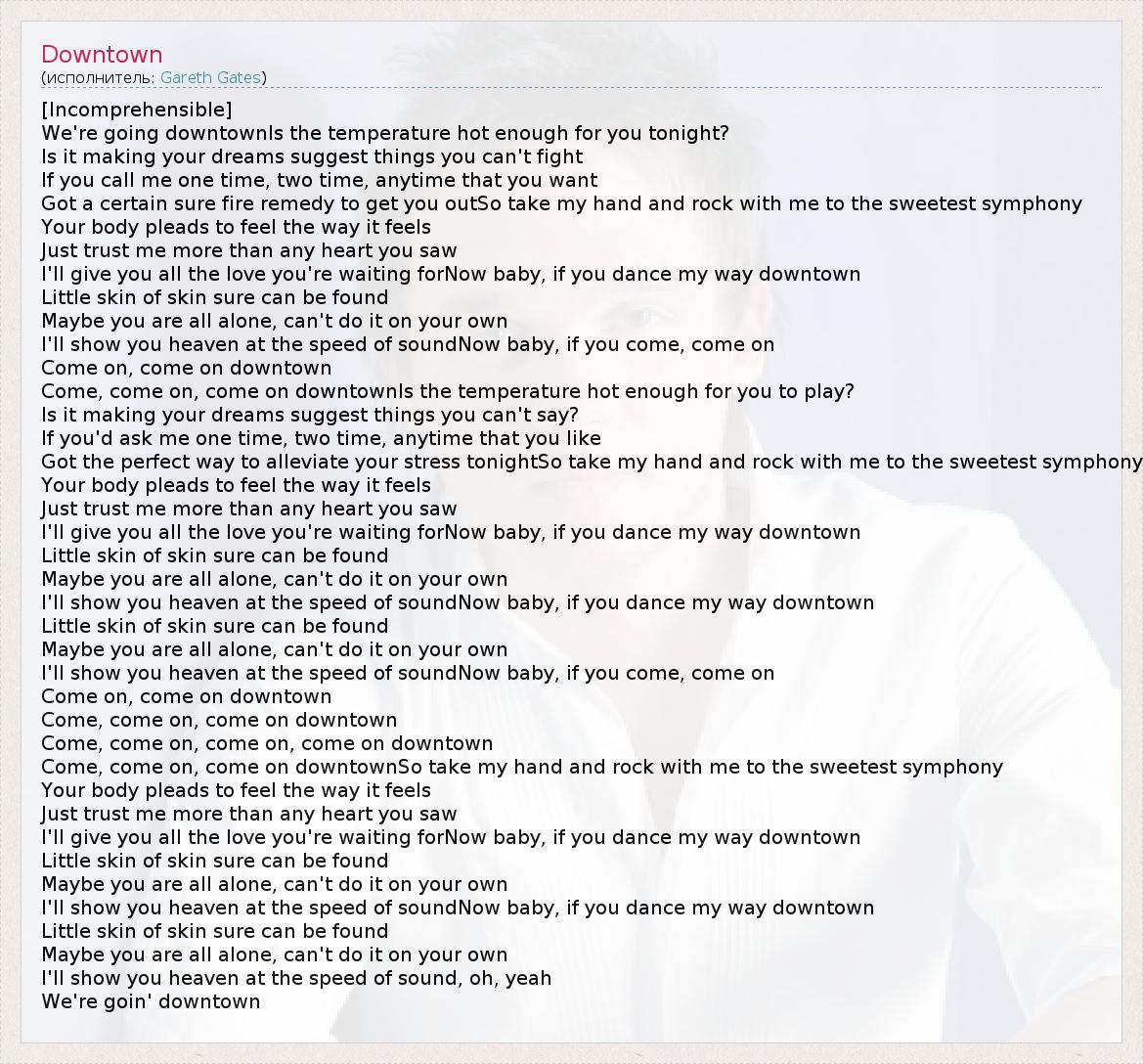 Это интересно:Гэрэт Гейтс - один из финалистов самого престижного конкурса для молодых исполнителей Великобритании ''Pop Idol''. Хотя он не стал призером конкурса (получил только 2-е место), на него обратили особое внимание.Британские СМИ отзываются о нём не иначе как: ''Gareth родился звездой. У него ангельский голос, он естественно выглядит перед камерой, а его модельная внешность - мечта... продолжение