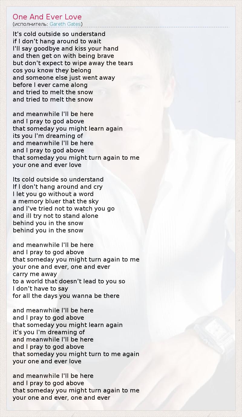 А как ты думаешь, о чем песня "One And Ever Love" ?