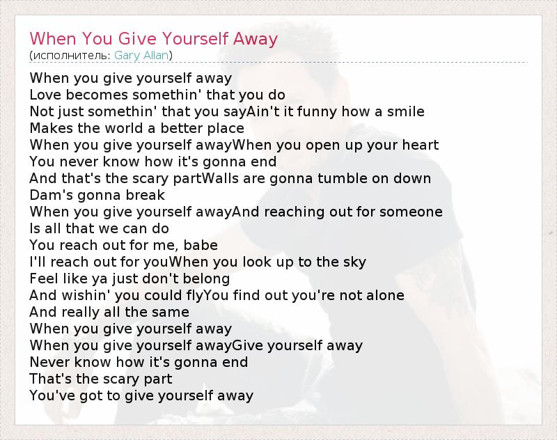 ГлавнаяИсполнителиGary AllanWhen You Give Yourself Away