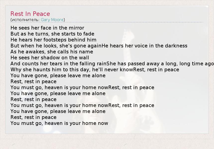 А как ты думаешь, о чем песня "Rest In Peace" ?