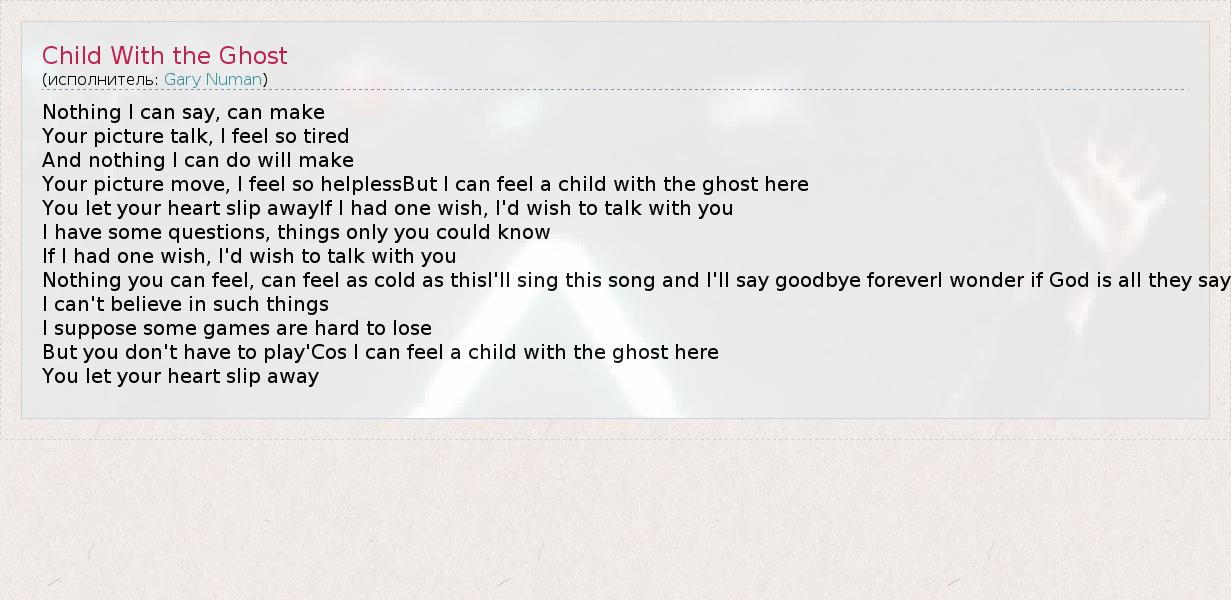 А как ты думаешь, о чем песня "Child With the Ghost" ?