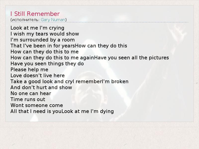 А как ты думаешь, о чем песня "I Still Remember" ?