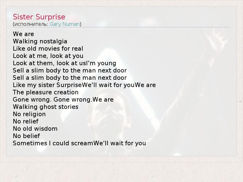 А как ты думаешь, о чем песня "Sister Surprise" ?