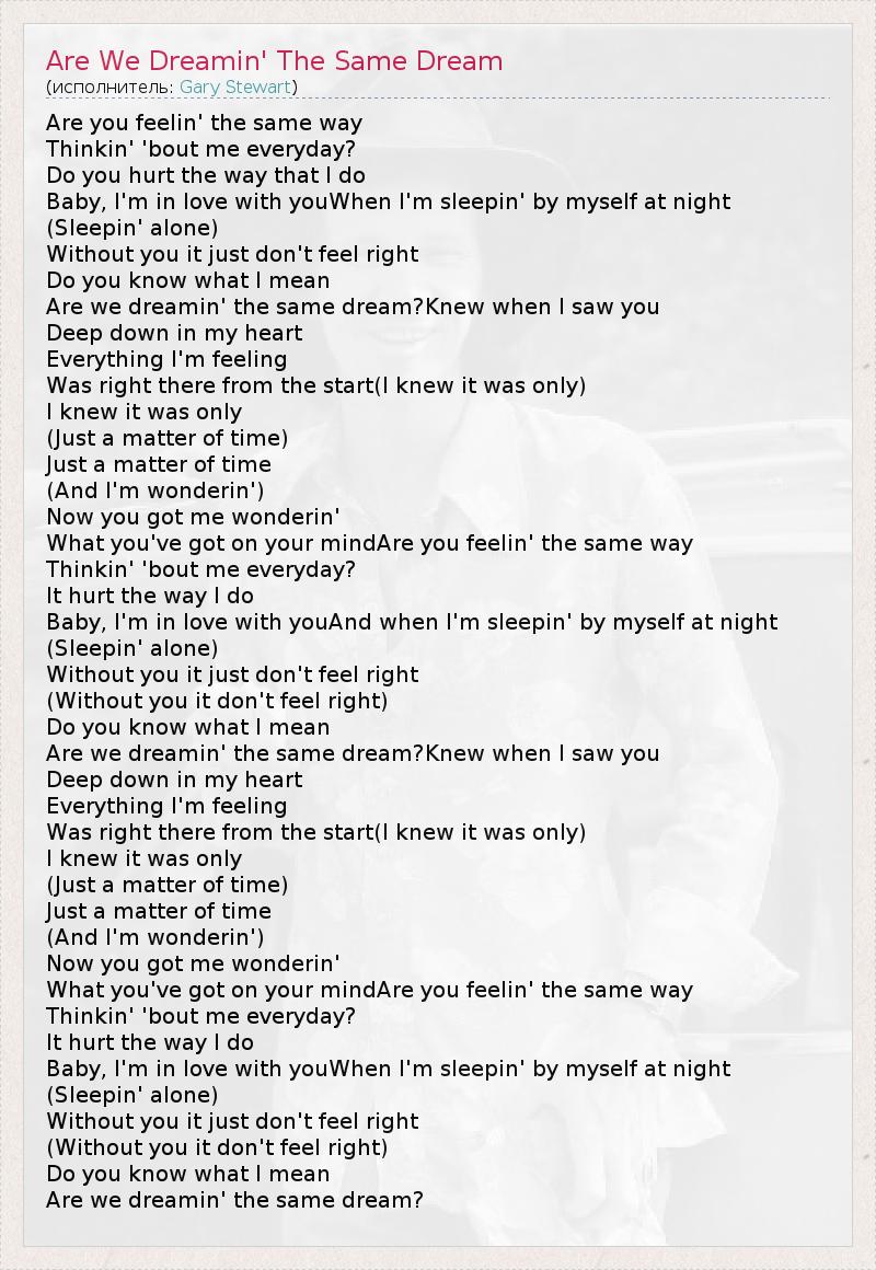 А как ты думаешь, о чем песня "Are We Dreamin' The Same Dream" ?