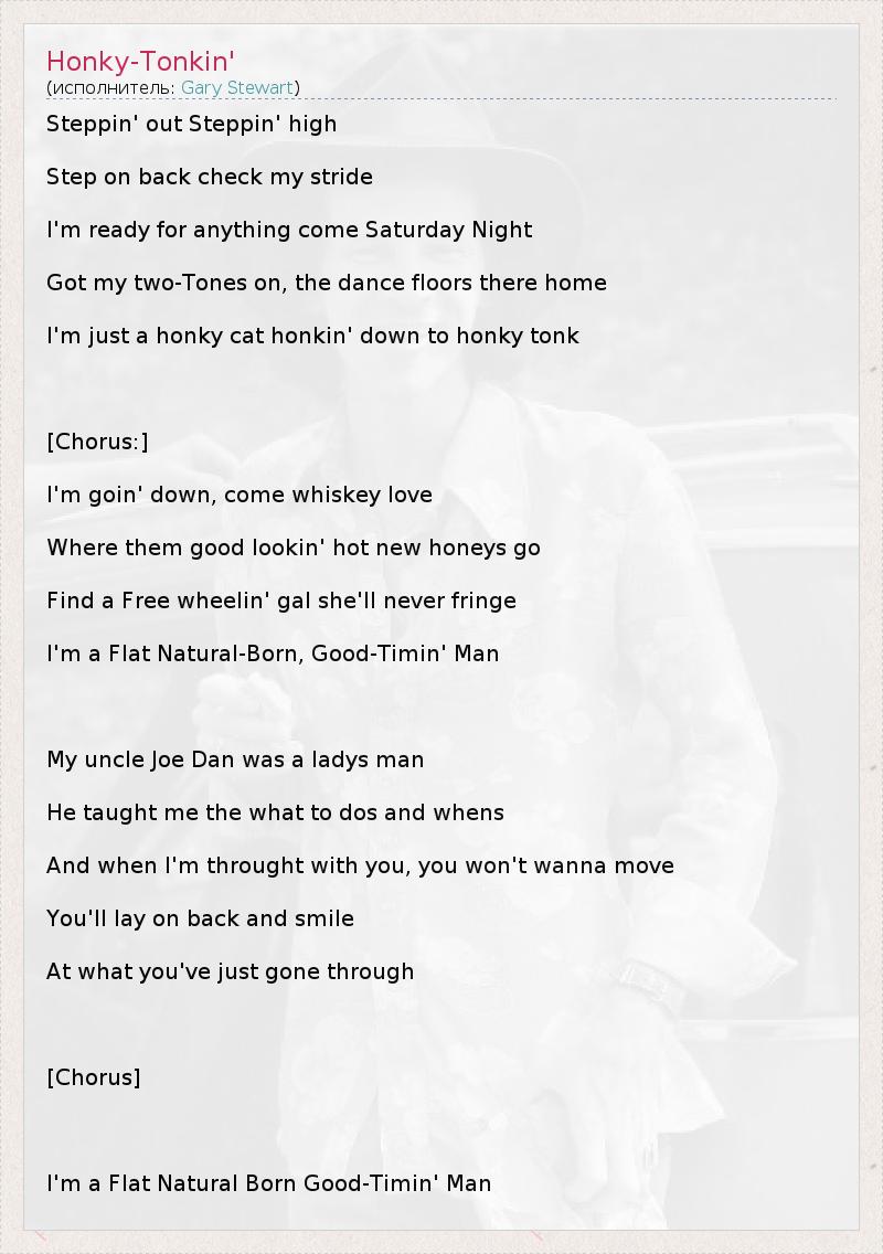 А как ты думаешь, о чем песня "Honky-Tonkin'" ?