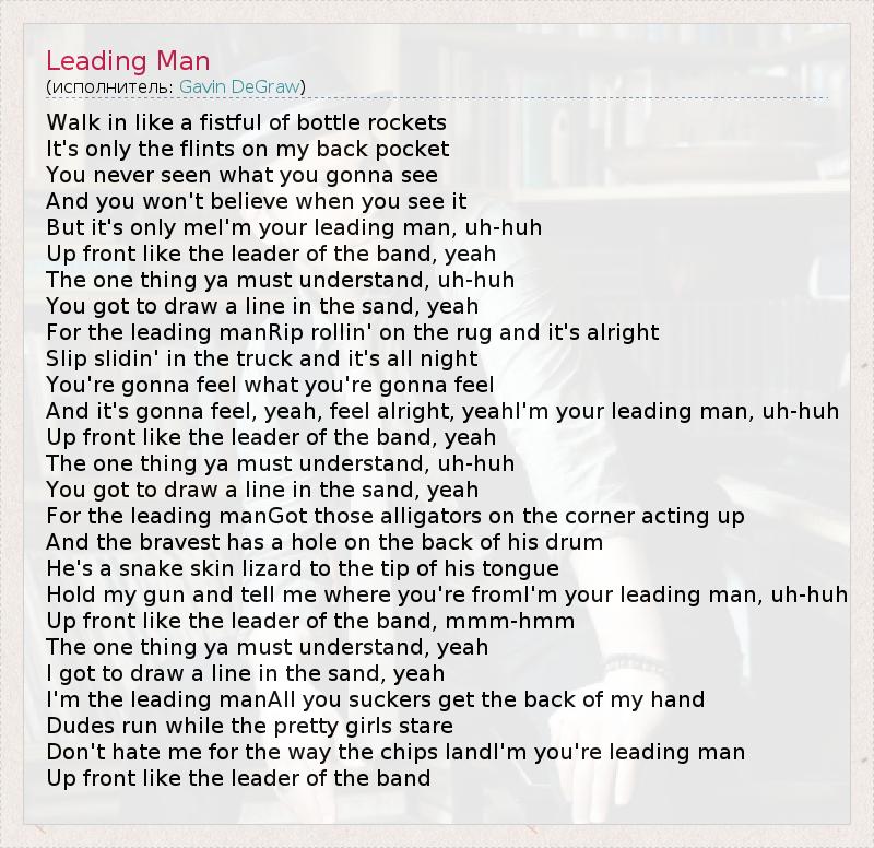 And it's gonna feel, yeah, feel alright, yeahI'm your leading man, uh-huh
