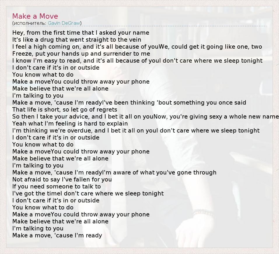А как ты думаешь, о чем песня "Make a Move" ?