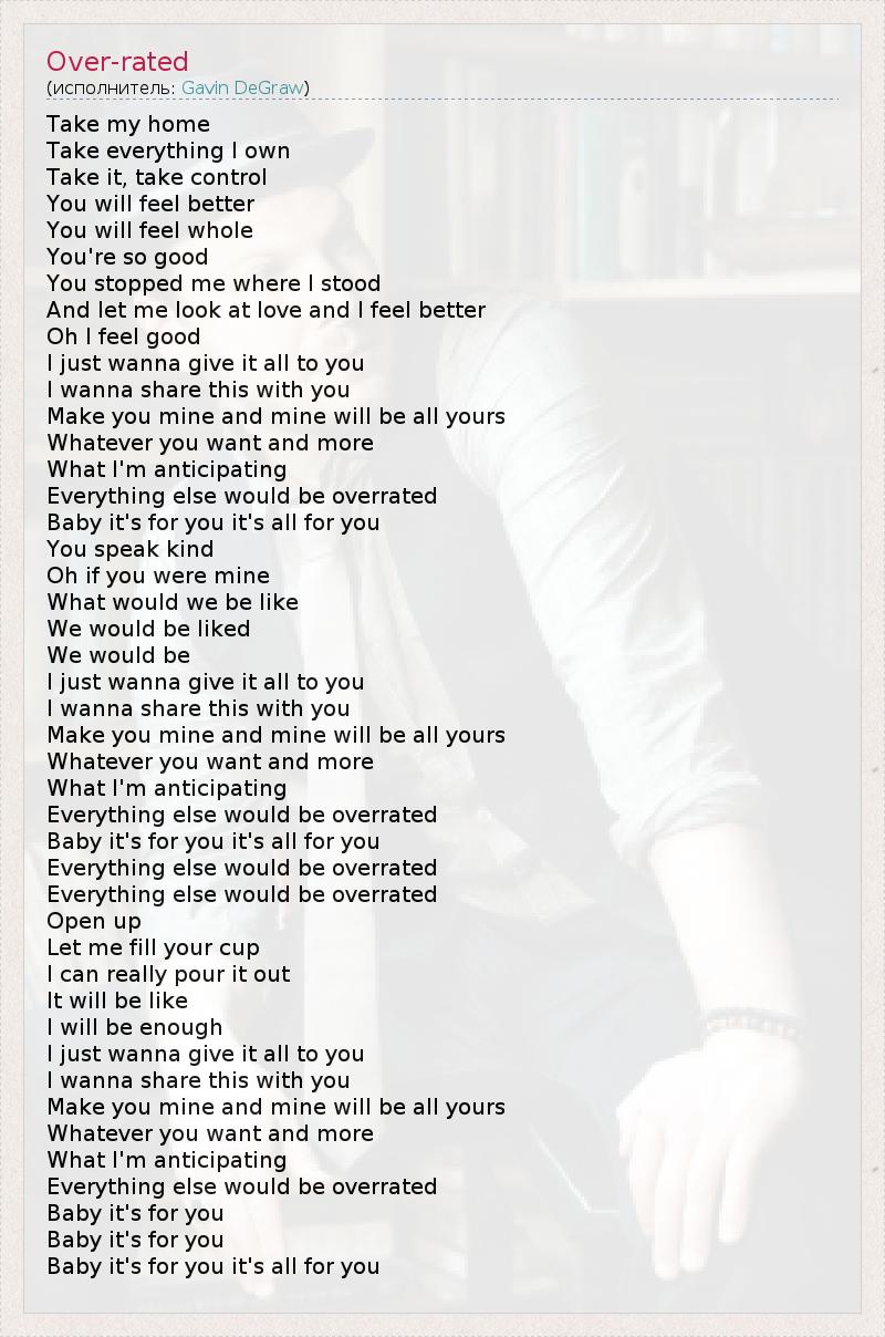 Это интересно:Гевин ДеГро американский поэт-песенник, певец и музыкант, известная и талантливая личность.Он родился 4 февраля 1977-го года в Catskills, Нью-Йорк. Отец Гевина работал охранником в местной тюрьме, а мать была медиком и трудилась в клинике для алкоголиков и наркоманов (кстати, тема алкоголизма и наркомании затрагивается Гевином в песне "I Don't Want To Be" («Я не хочу быть»)).В возрасте... продолжение