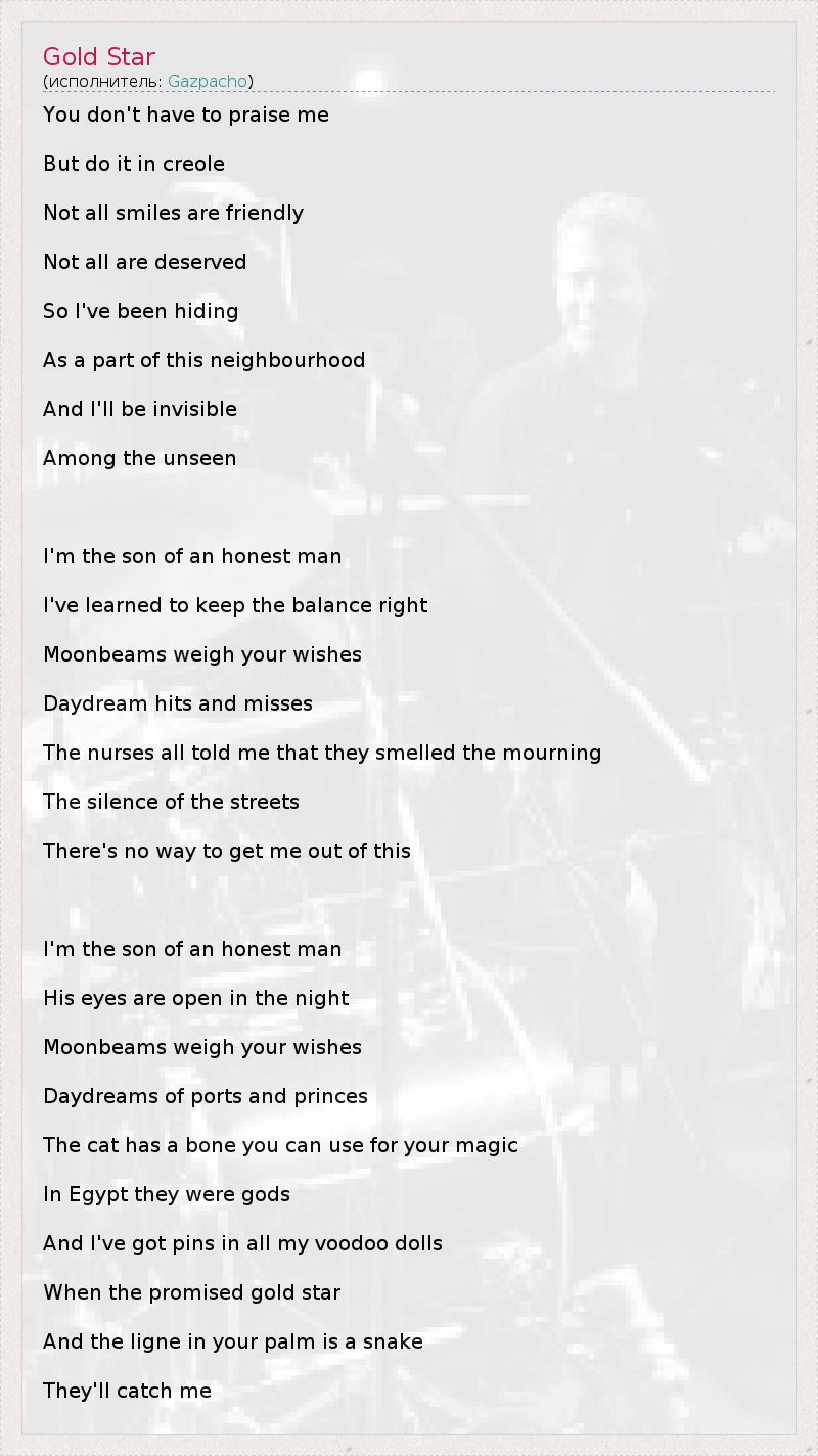 А как ты думаешь, о чем песня "Gold Star" ?