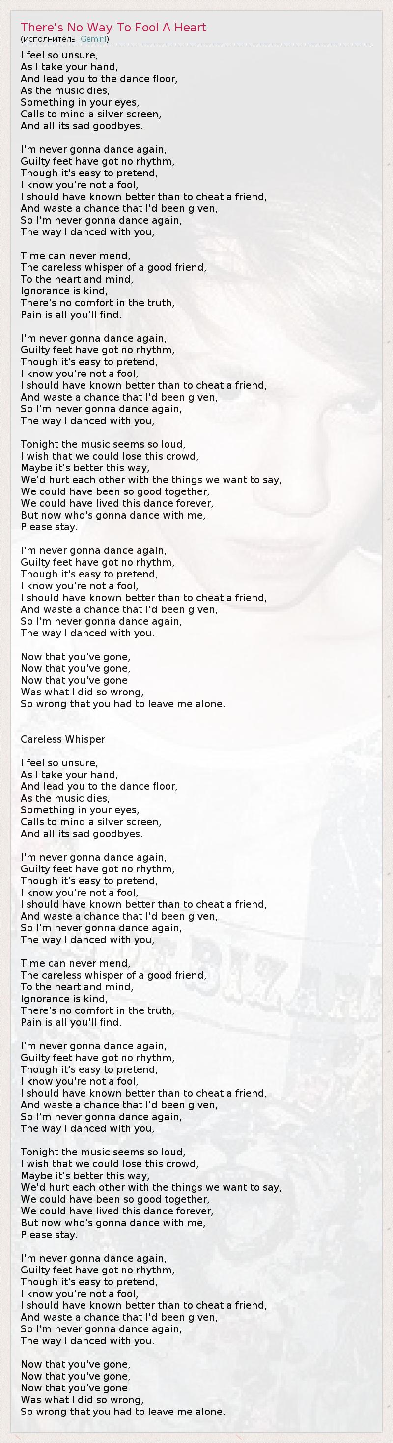 ГлавнаяИсполнителиGeminiThere's No Way To Fool A Heart