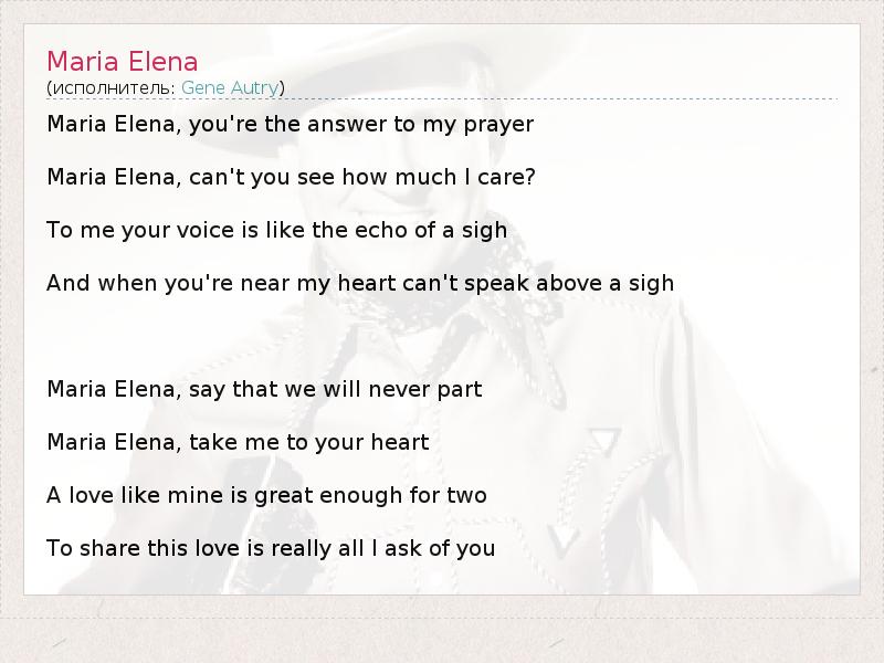 А как ты думаешь, о чем песня "Maria Elena" ?