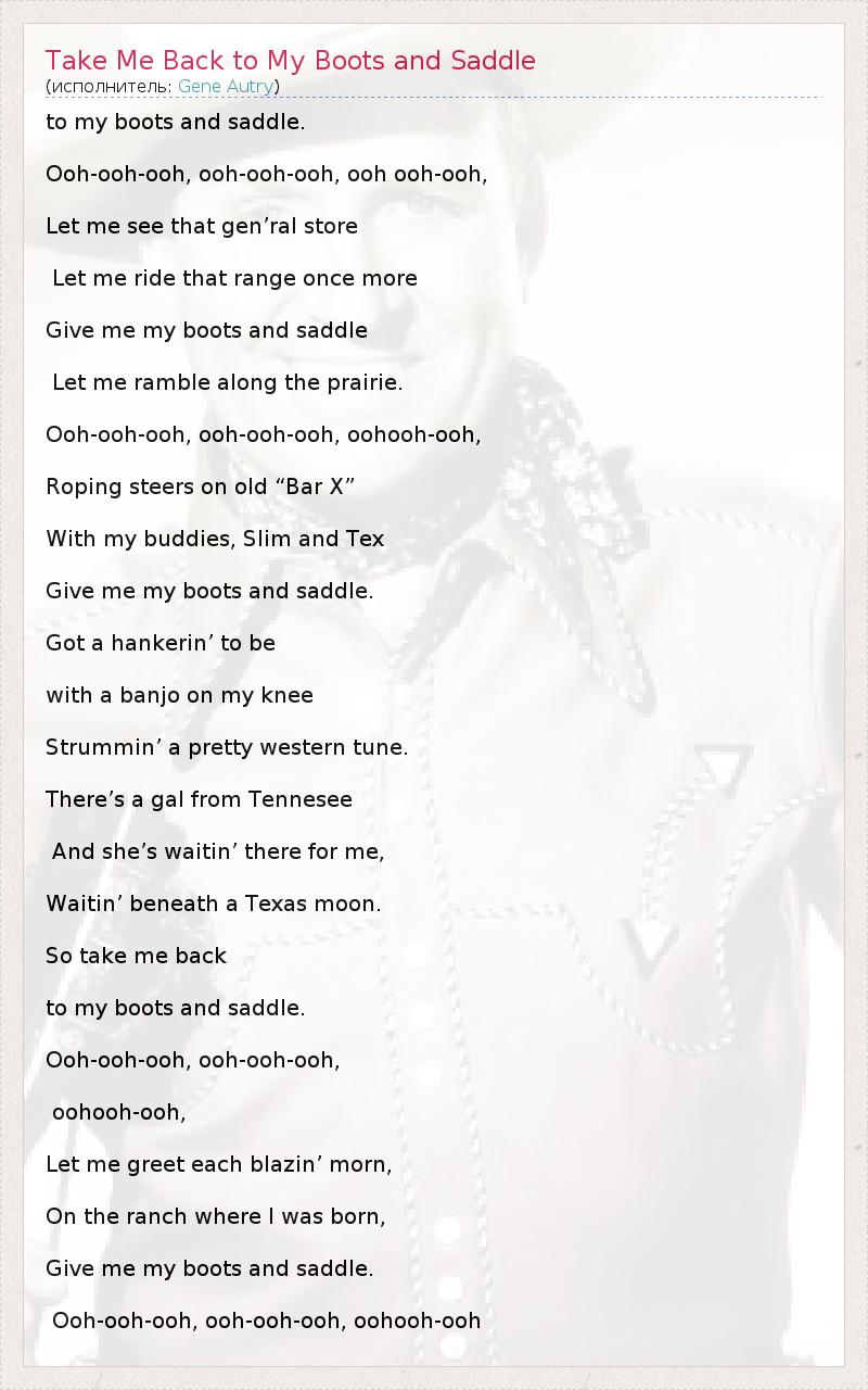 А как ты думаешь, о чем песня "Take Me Back to My Boots and Saddle" ?