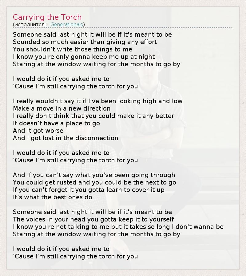 А как ты думаешь, о чем песня "Carrying the Torch" ?