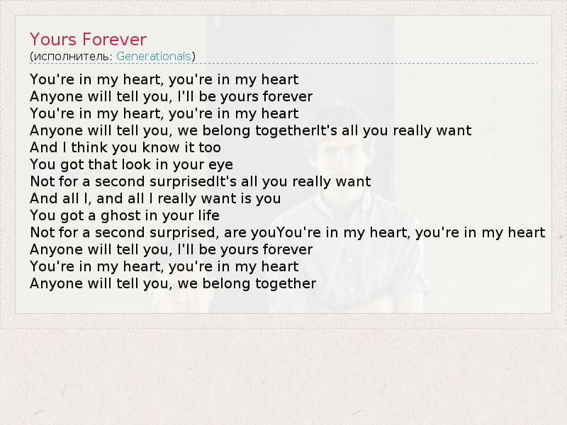 А как ты думаешь, о чем песня "Yours Forever" ?