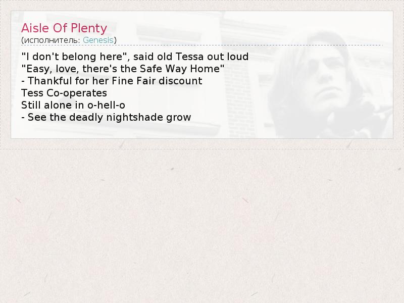 А как ты думаешь, о чем песня "Aisle Of Plenty" ?
