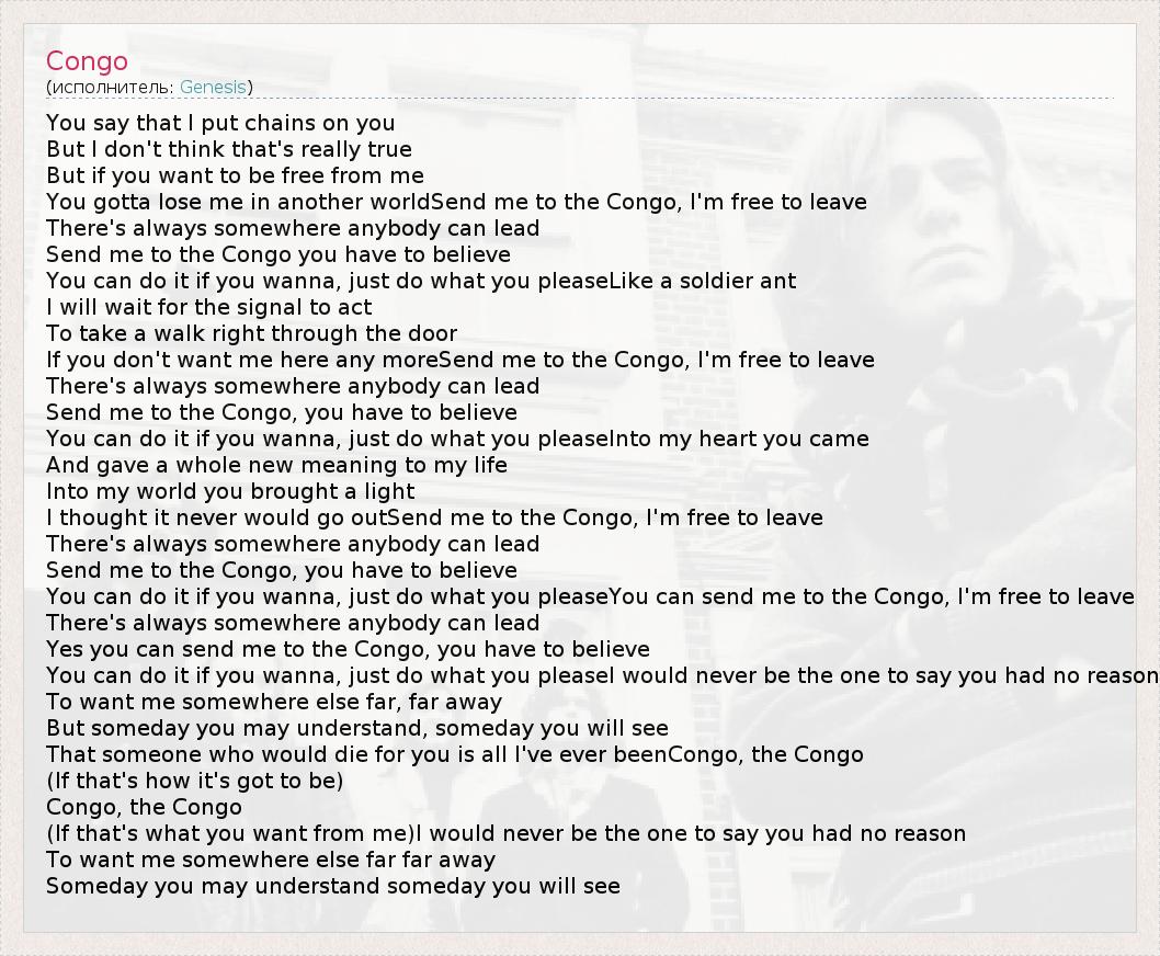 That someone who would die for you is all I've ever beenCongo, the Congo
