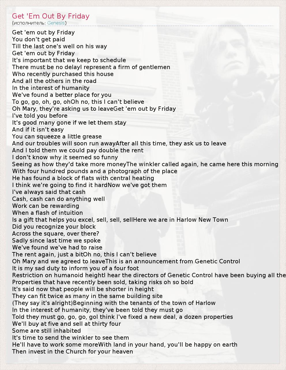 ГлавнаяИсполнителиGenesisGet 'Em Out By Friday