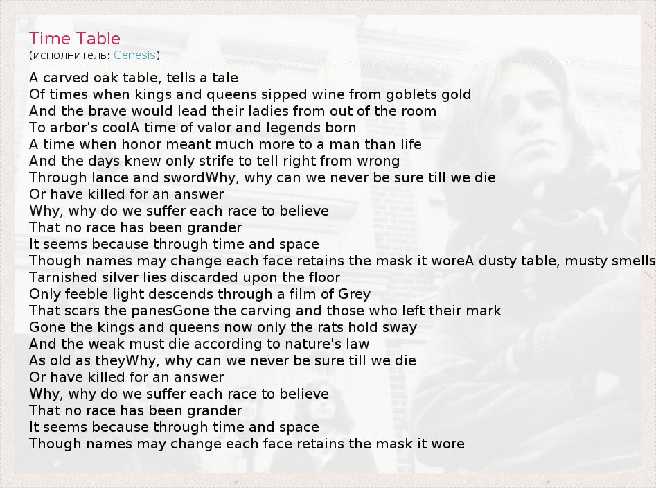 Слова и музыка всех песен Тони Бэнкс, Питер Гэбриэл, Фил Коллинз, Майк Резерфорд и Стив Хэкетт.