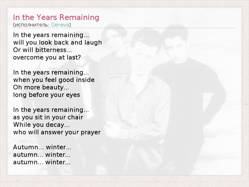 А как ты думаешь, о чем песня "In the Years Remaining" ?