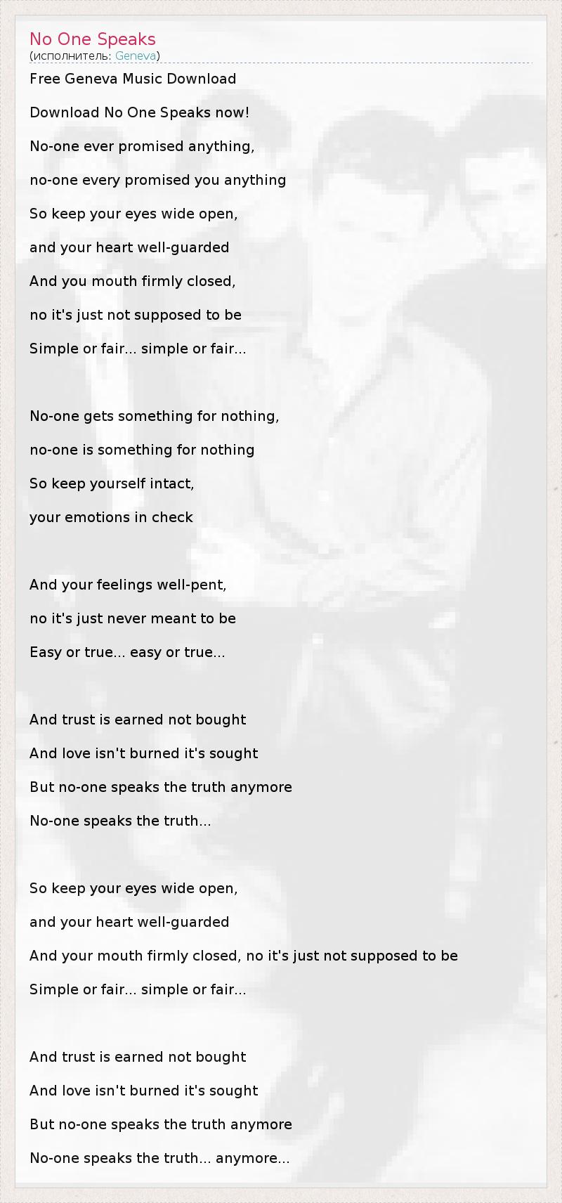 А как ты думаешь, о чем песня "No One Speaks" ?