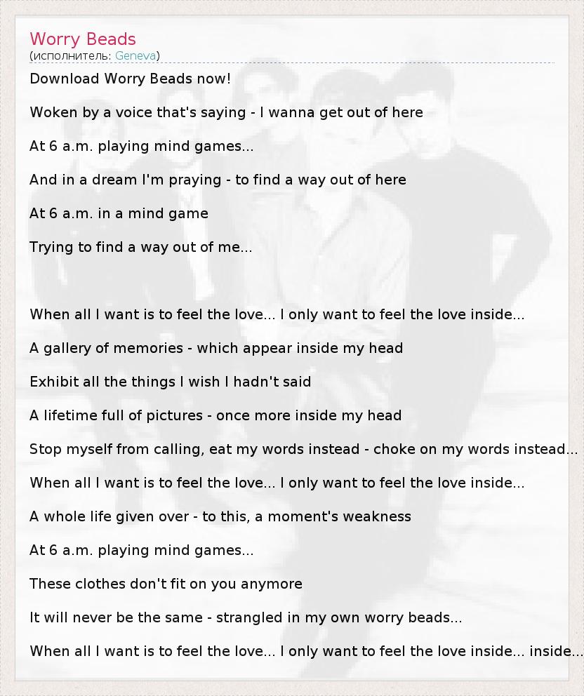 А как ты думаешь, о чем песня "Worry Beads" ?