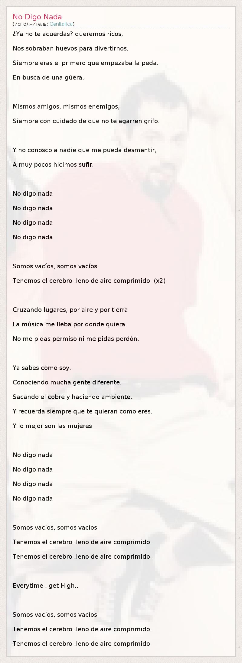 А как ты думаешь, о чем песня "No Digo Nada" ?