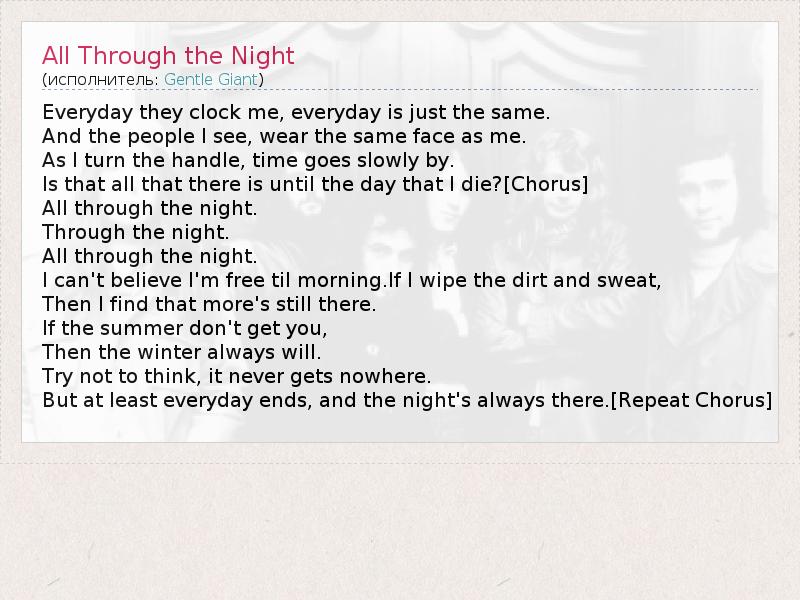А как ты думаешь, о чем песня "All Through the Night" ?