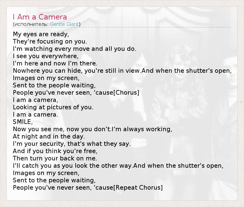 А как ты думаешь, о чем песня "I Am a Camera" ?
