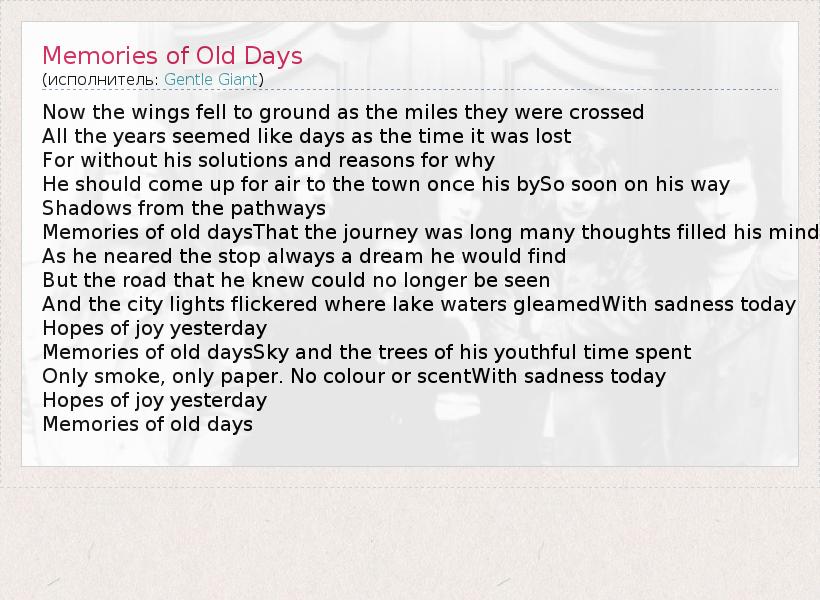 А как ты думаешь, о чем песня "Memories of Old Days" ?