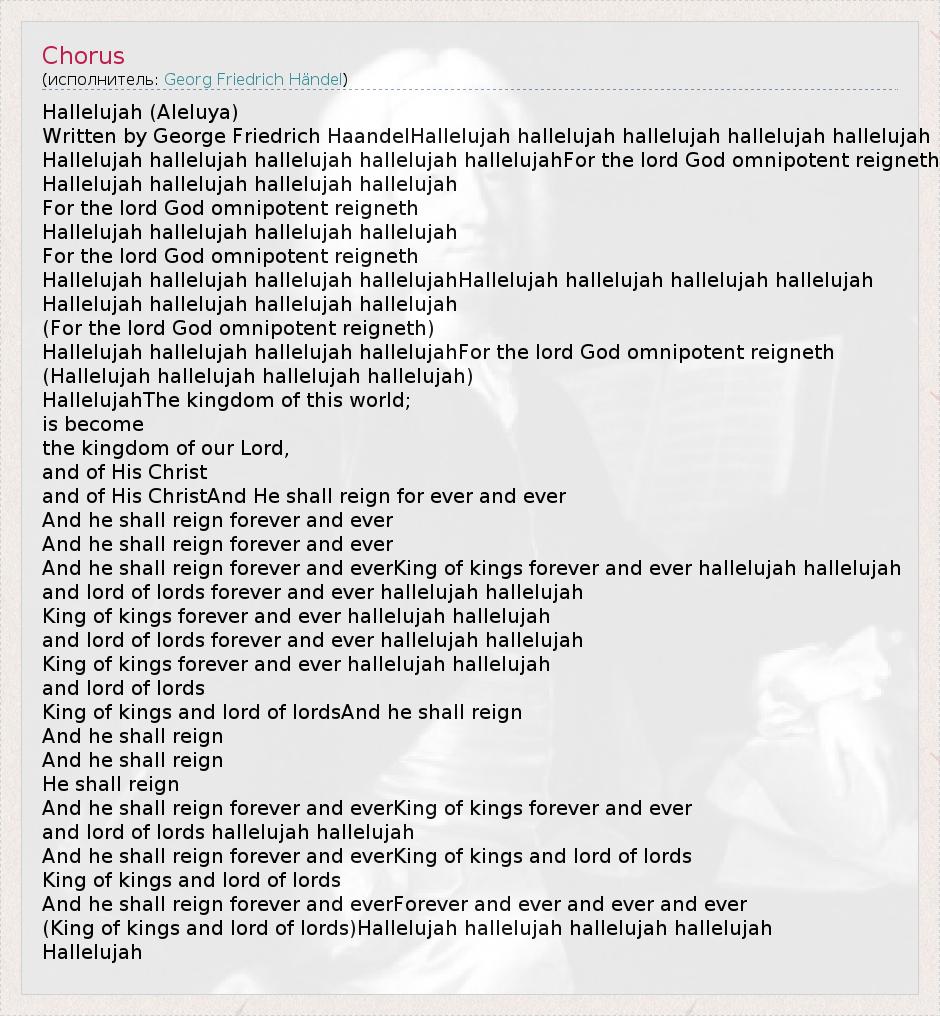 Written by George Friedrich HaandelHallelujah hallelujah hallelujah hallelujah hallelujah