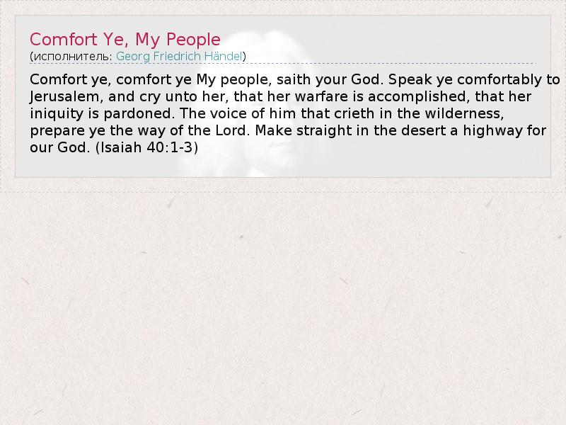 А как ты думаешь, о чем песня "Comfort Ye, My People" ?