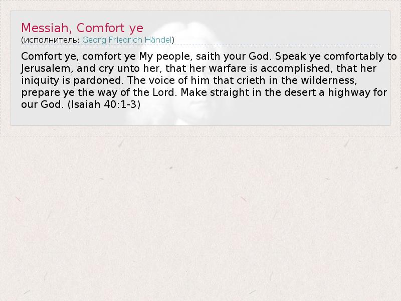 А как ты думаешь, о чем песня "Messiah, Comfort ye" ?