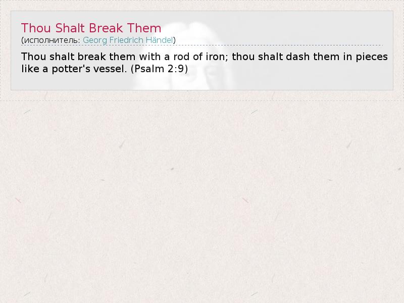 А как ты думаешь, о чем песня "Thou Shalt Break Them" ?