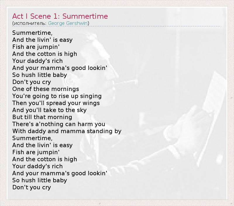 ГлавнаяИсполнителиGeorge GershwinAct I Scene 1: Summertime