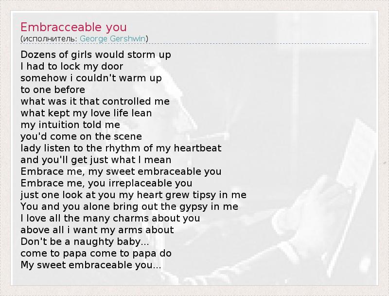 А как ты думаешь, о чем песня "Embracceable you" ?