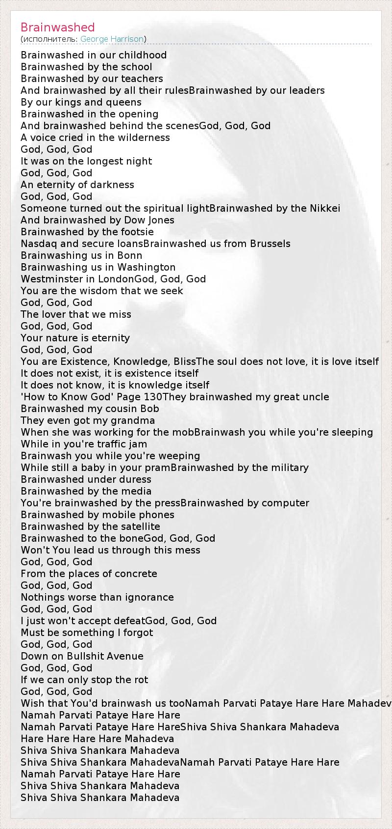 А как ты думаешь, о чем песня "Brainwashed" ?