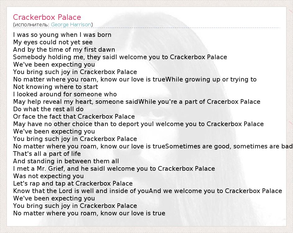 А как ты думаешь, о чем песня "Crackerbox Palace" ?