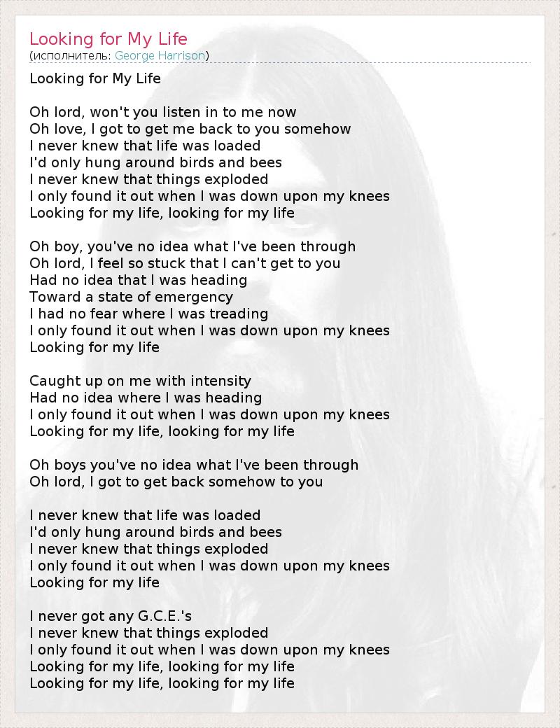 А как ты думаешь, о чем песня "Looking for My Life" ?