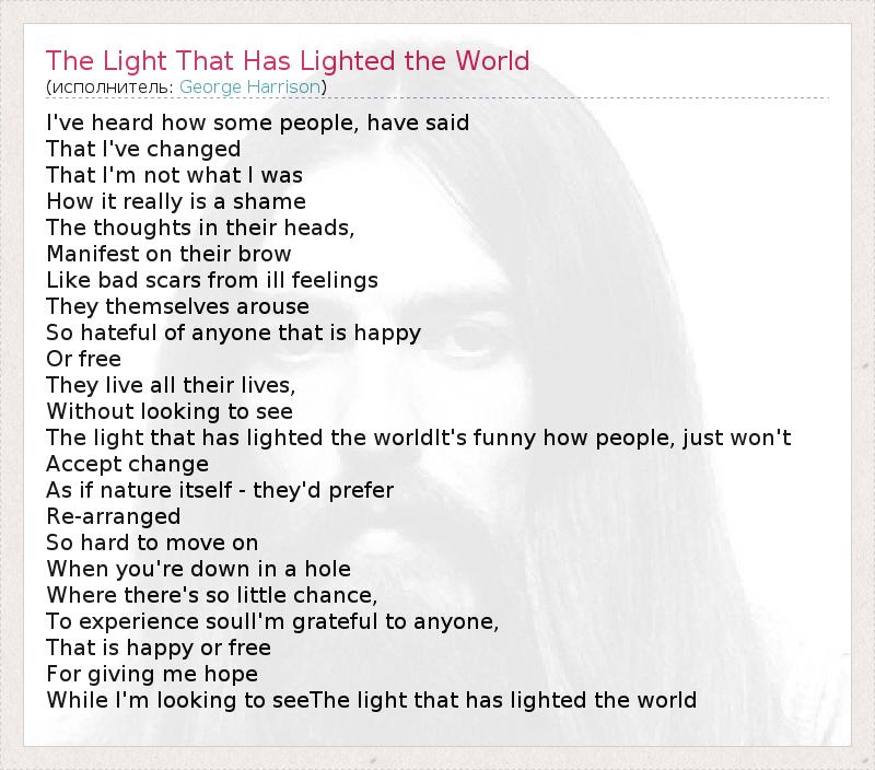 А как ты думаешь, о чем песня "The Light That Has Lighted the World" ?
