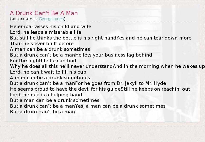 А как ты думаешь, о чем песня "A Drunk Can't Be A Man" ?
