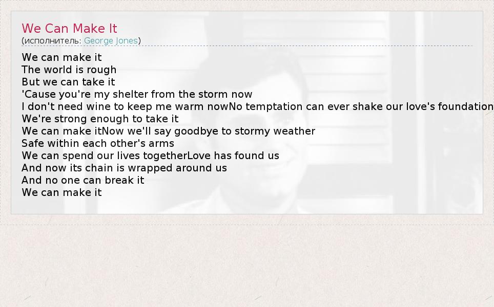 А как ты думаешь, о чем песня "We Can Make It" ?