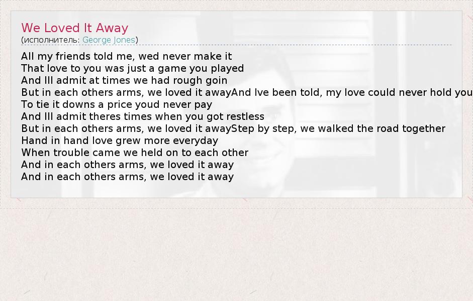 А как ты думаешь, о чем песня "We Loved It Away" ?