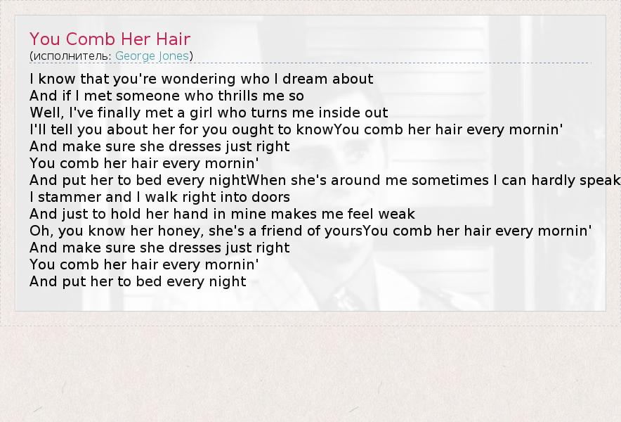 А как ты думаешь, о чем песня "You Comb Her Hair" ?