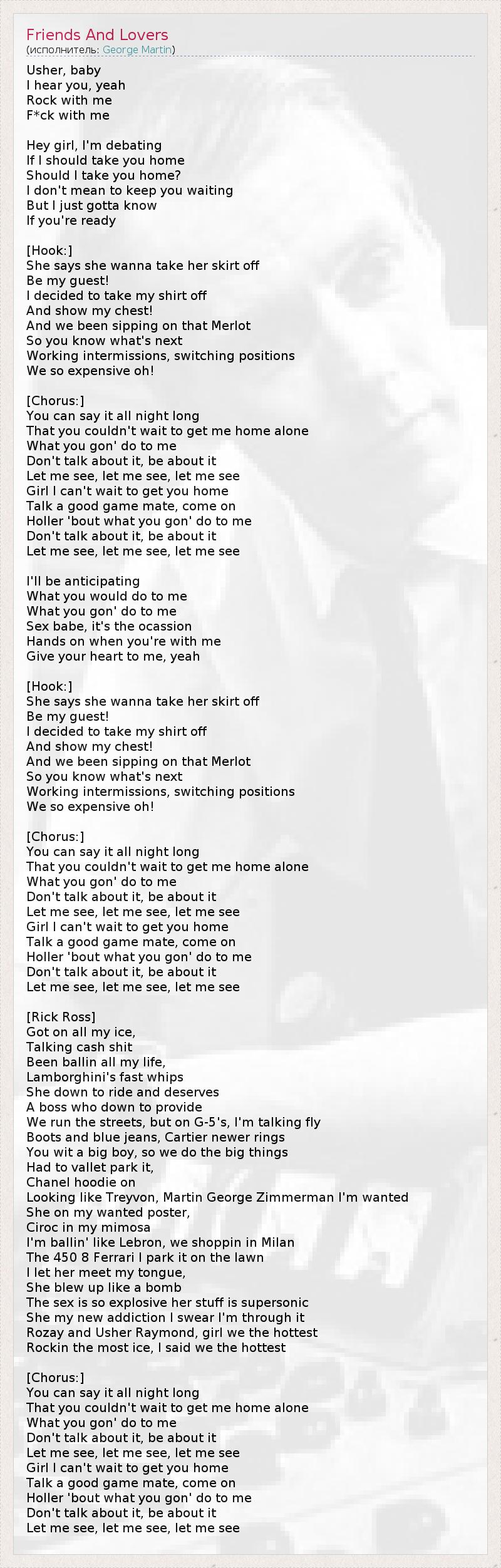А как ты думаешь, о чем песня "Friends And Lovers" ?