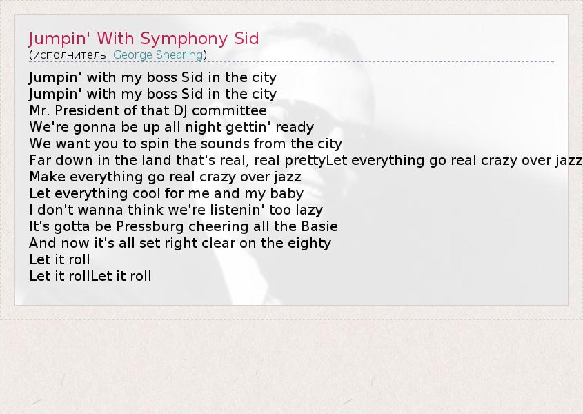 А как ты думаешь, о чем песня "Jumpin' With Symphony Sid" ?