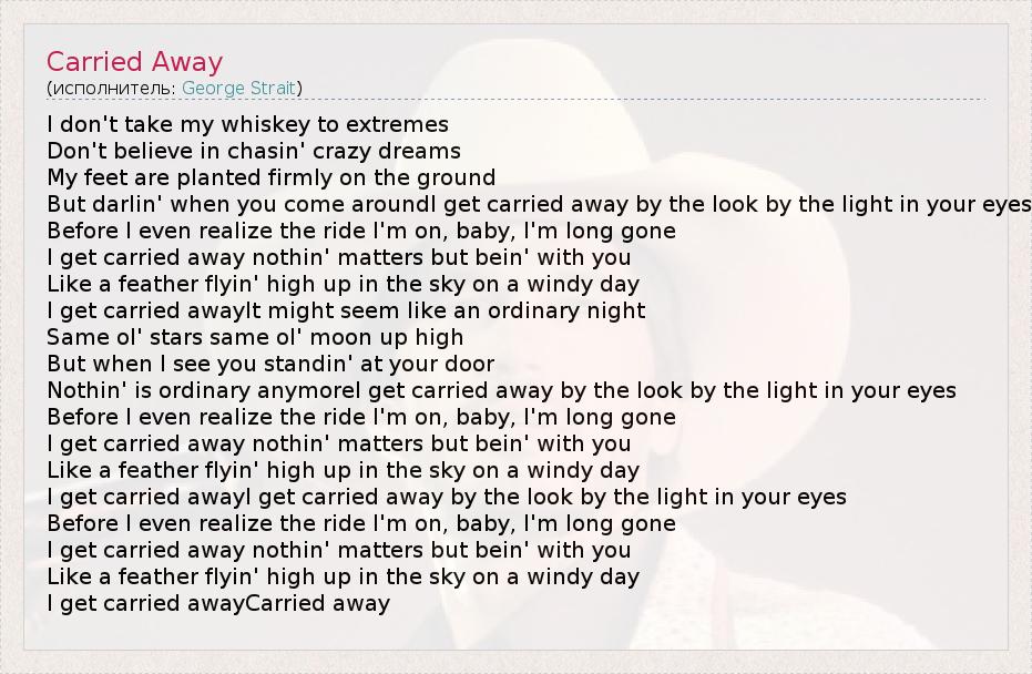 Nothin' is ordinary anymoreI get carried away by the look by the light in your eyes