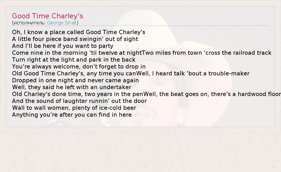 А как ты думаешь, о чем песня "Good Time Charley's" ?