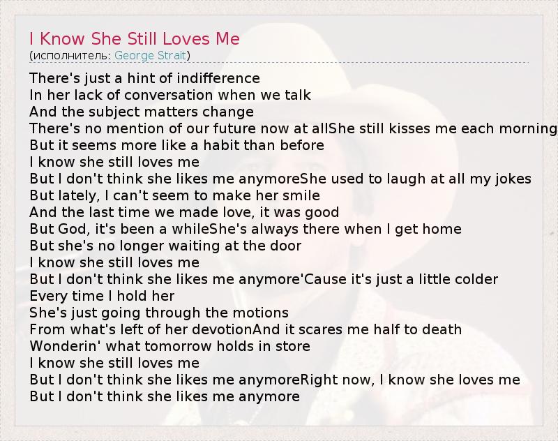 ГлавнаяИсполнителиGeorge StraitI Know She Still Loves Me