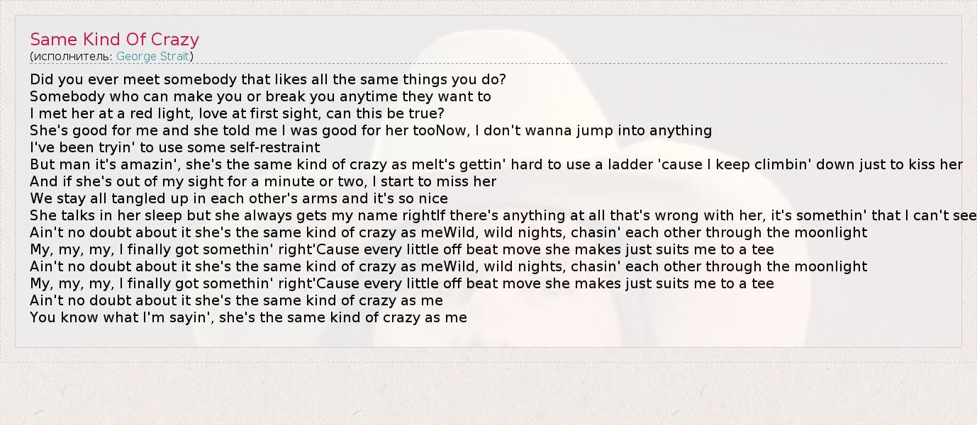 А как ты думаешь, о чем песня "Same Kind Of Crazy" ?