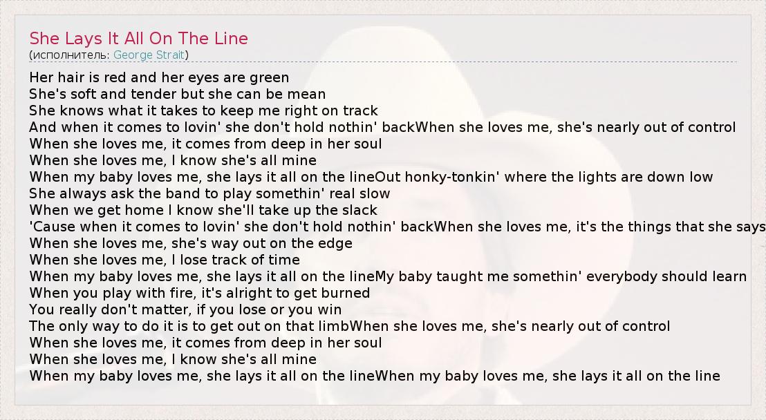 ГлавнаяИсполнителиGeorge StraitShe Lays It All On The Line